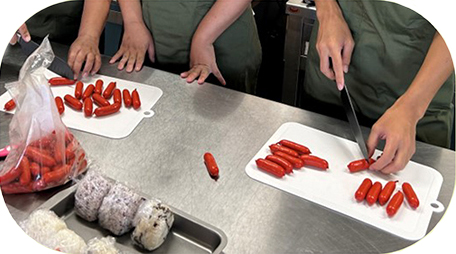 メニューを考え、お弁当を作り、販売、配達までの作業を、分担して行います。考える•作るを繰り返し、働くことへの慣れ、やりがいへとつなげます。
